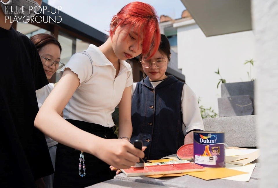 Pop-Up Playground là sân chơi giao lưu, nơi Dulux triển khai các workshop về nghệ thuật để cộng đồng hiểu rõ câu chuyện của màu sắc và cách ứng dụng màu sắc trong thiết kế nội thất. Trong đó, nổi bật là buổi workshop chế tác thủ công tác phẩm trang trí mỹ thuật, thuyết trình và phản biện mang nguồn cảm hứng khác biệt về hành trình 20 năm ColourFutures của Dulux.